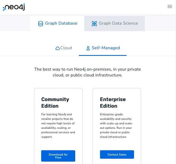 Things change, but at the time of writing I navigated to https://neo4j.com/pricing/, clicked on Self-Managed and then Download for Free.